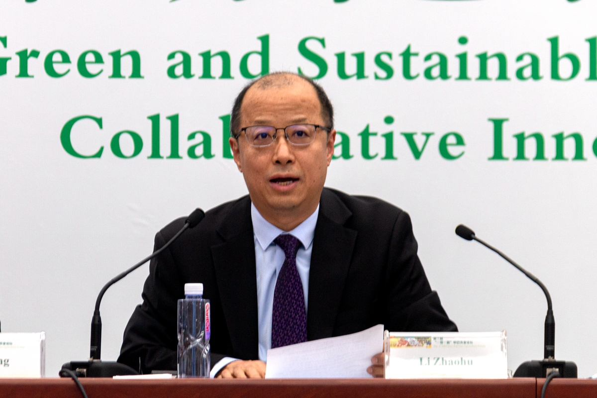 湖北省政府外事工作办公室副主任祝晓彬致辞(学通社记者 吴渺 摄)
