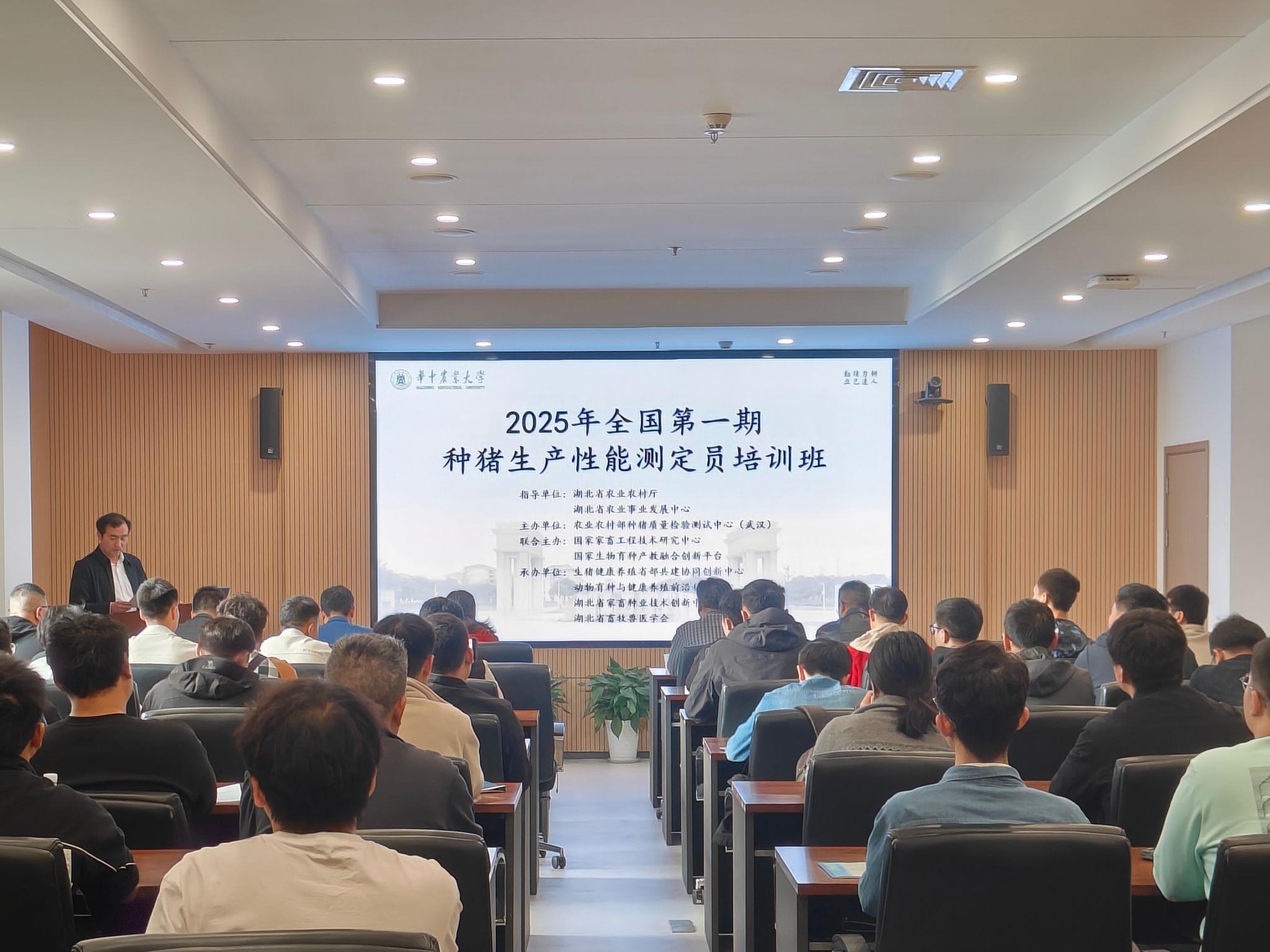 (通讯员:巫婷婷 摄影:付雪林)3月24日至27日,由农业农村部种猪质量检验测试中心(武汉)、国家家畜工程技术研究中心、国家生物育种产教融合创新平台联合主办的2025年全国第一期种猪生产性能测定员培训班在我校举行。来自国家生猪核心育种场、种公猪站及全国猪联合育种协作组成员单位的54名育种技术骨干齐聚太阳成集团tyc122ccvip,围绕种猪生产性能测定技术展开系统学习。湖北省农业农村厅种业管理处二级调研员周明望,我校动科动医学院院长赵书红教授、刘望宏研究员、项韬教授、胡军勇高级兽医师等授课专家出席开班仪式,仪式由国家家畜工程技术研究中心副主任周全主持。
