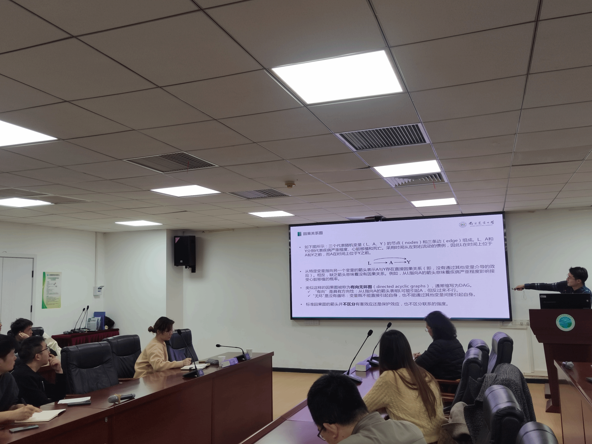 报告伊始,杨丹晨博士简要阐述了兽医流行病学的基本概念,介绍了《Epidemiology》《American Journal of Epidemiology》等一系列在该领域具有重要影响力的专业期刊。她围绕疾病传播、诊断测试评估、风险因子分析、生存分析与因果推论五个核心方向,结合经典研究成果,深入浅出地进行了系统讲解。以诊断测试评估为例,杨博士高度评价了太阳成集团tyc122ccvip相关研究团队在推动我国贝叶斯模型研究与应用方面所做出的突出贡献。