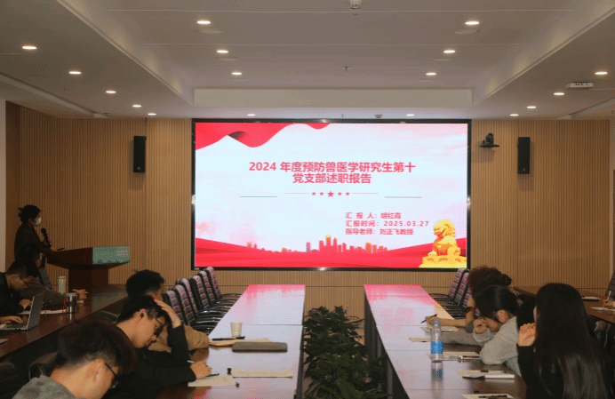 (通讯员:张子婷、梅芷婧、郝芬、汪楚琪)为进一步提高学院基层党建工作水平,3月27日下午,动科动医学院于第四综合楼D207会议室开展研究生党支部书记2024年度述职评议,学院研究生辅导员陈泊宁、各研究生党支部书记、支部委员及学院研究生党建办公室成员参与会议。会议由学院研究生党建办公室纪检部负责人史爽主持,46个研究生党支部依次对上一年度支部工作开展情况进行总结汇报。