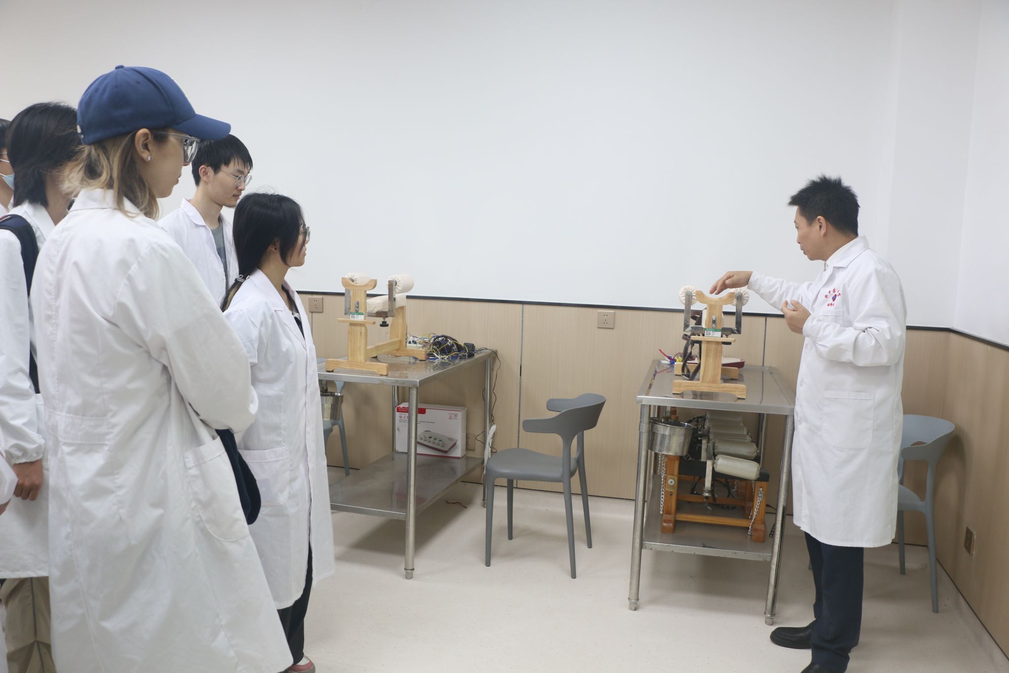 胡长敏和詹存林医生在病理处理室演示了病理样本的观察,并对积极提问的同学们进行回应。
