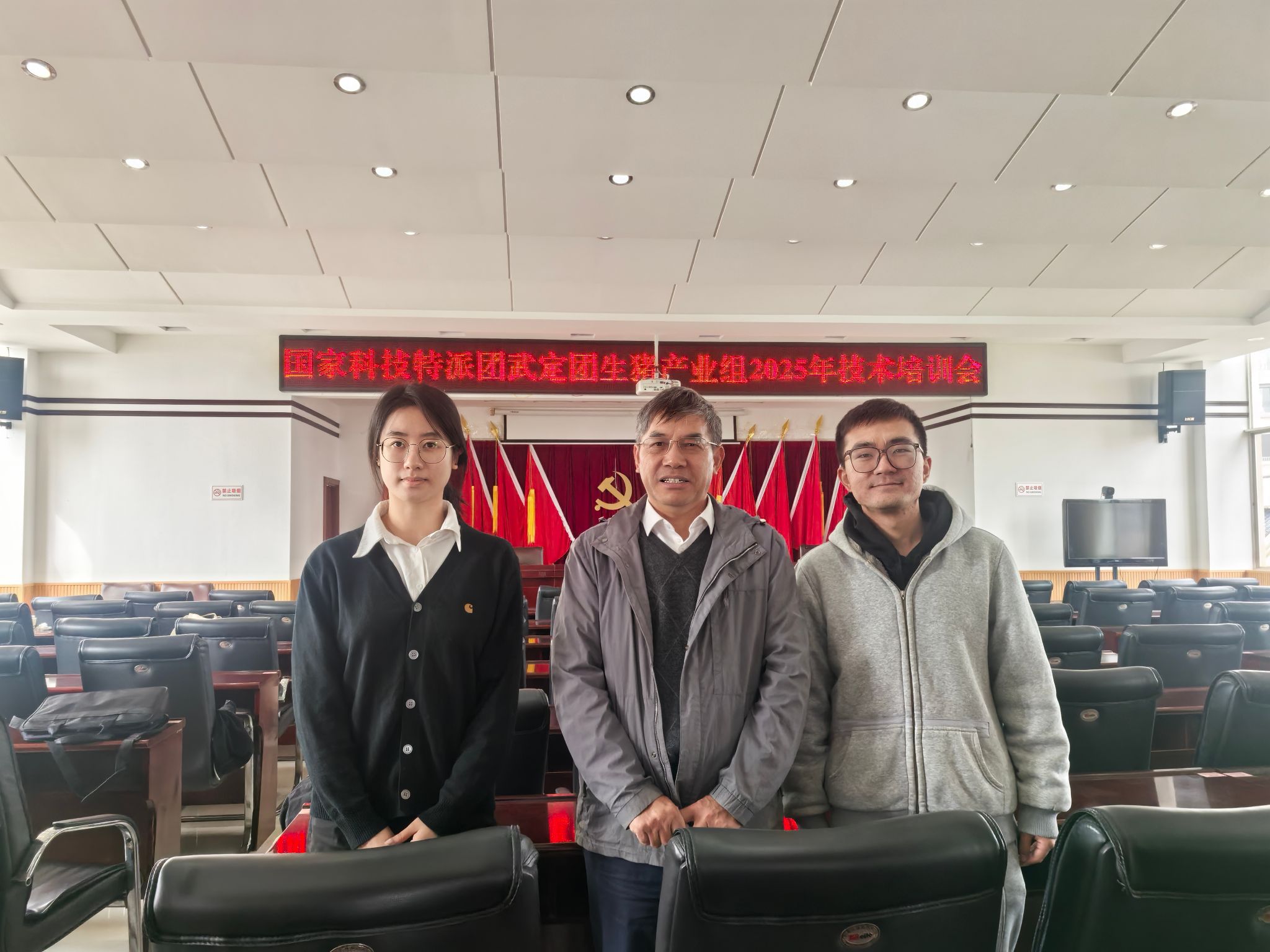次日(10月24日),特派团在武定县举办了专题技术培训。何启盖教授围绕“动物传染病免疫预防”与“猪场健康管理”两大主题,为当地养殖场技术人员进行了系统讲解。讲座结合最新科研成果与实践案例,深入阐述了疫病防控策略与猪场管理要点,解答了从业人员在实际操作中遇到的技术难题。