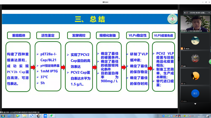 (通讯员王建)2020年11月3日上午,山东省滨州畜牧兽医研究院曲光刚副研究员应邀做客动科动医学院“创新创造创业高端论坛”,带来了题为“猪圆环病毒2型Cap蛋白VLP原核表达关键技术创新”的学术报告。校内外师生30多人线上参加了此次学术报告。报告会由动科动医学院徐在言副教授主持。