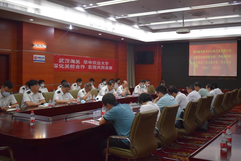 (通讯员 周明)7月5日,我院公共卫生学系教工党支部、武汉海关技术中心机关党委、武汉海关进出口食品安全处党支部联合开展了“食品安全伴我行”主题党日活动。武汉海关副关长沈建明同志及相关工作人员,公共卫生学系教工党支部全体党员、兽药科学系及我校食品科技学院部分师生参加了活动。活动由武汉海关技术中心机关党委书记黄晟同志主持。