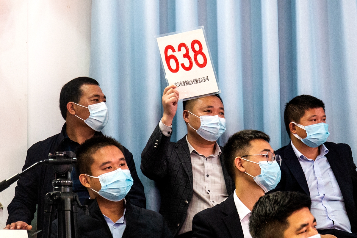 拍卖会上,18个特优级种猪“选手”在大屏幕上逐一“亮相”,成为明标竞价拍卖的主角。竞拍者们在认真观看的同时,心中早有中意选择。随着拍卖师的“喊价”,现场气氛陡然紧张起来,竞拍号码也接连举起,价格不断被刷新。“三万六!是否还有加价?”“三万六,成交!”一槌定音后,最后“出场”的18号“选手”——一头综合指数第一的大约克夏种公猪,因其性状好,在多次竞价后以36000元的价格拍卖成交,成为本届种猪拍卖会“标王”。而此时的场外,暗标竞购红榜前围满了人,大家紧盯着实时拍卖情况。最终,本届拍卖会公开拍卖特优级种公猪18头,“标王”为湖北金林原种畜牧有限公司213020号大约克夏种公猪,公开拍卖总价32.7万元,暗标拍卖51头优级种公猪,暗标拍卖总价28.81万元。