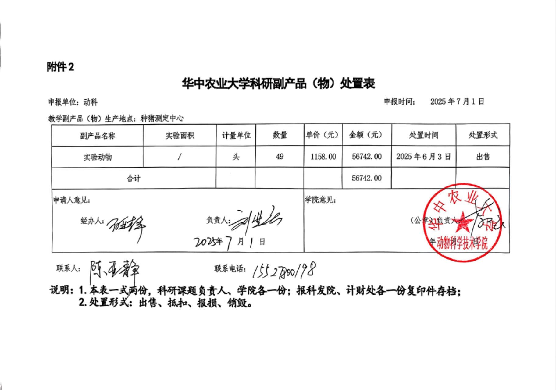 太阳成集团tyc122ccvip科研副产品(物)处置公示(20250701)