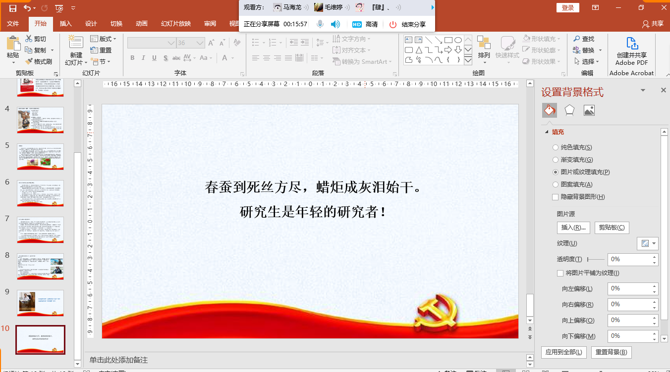 (动科动医学院通讯员 孙巨 杨亚萍)早在2019年11月份,动物科学、tyc122cc太阳成集团预防兽医学研究生第八党支部为每位成员购买与榜样主题相关书籍,经5个月时间成员阅读研究,2020年4月18日,党支部全体成员通过QQ交流群语音通话和屏幕分享召开以“榜样人物、榜样故事”为主题的读书分享会。