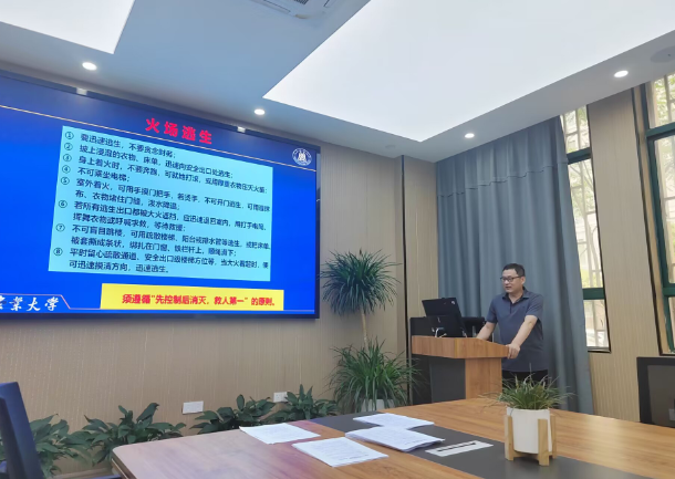 (通讯员:王佳灿 程古月)2024年4月25日下午,兽药科学系教工党支部、研究生第二、第二十、第二十一党支部在国家兽药残留基准实验室一楼会议室开展了“树牢总体国家安全观”主题党日活动和兽药楼火灾疏散逃生应急演练。会议学习了十四届全国人大二次会议政府工作报告、习近平在中共中央政治局第十二次集体学习时的重要讲话、《中共中央国务院关于学习运用“千村示范、万村整治”工程经验有力有效推进乡村全面振兴的意见》、习近平在参加江苏代表团审议时的重要讲话、习近平总书记关于新质生产力的系列重要论述、习近平总书记关于总体国家安全观的重要论述、铸牢中华民族共同体意识,提升防范敌对势力煽宣炒作专门教育等理论知识。随后由谢长清老师讲解各种实验室消防事故相关事例并进行了消防知识培训,最后进行了兽药楼火灾疏散逃生应急演练。