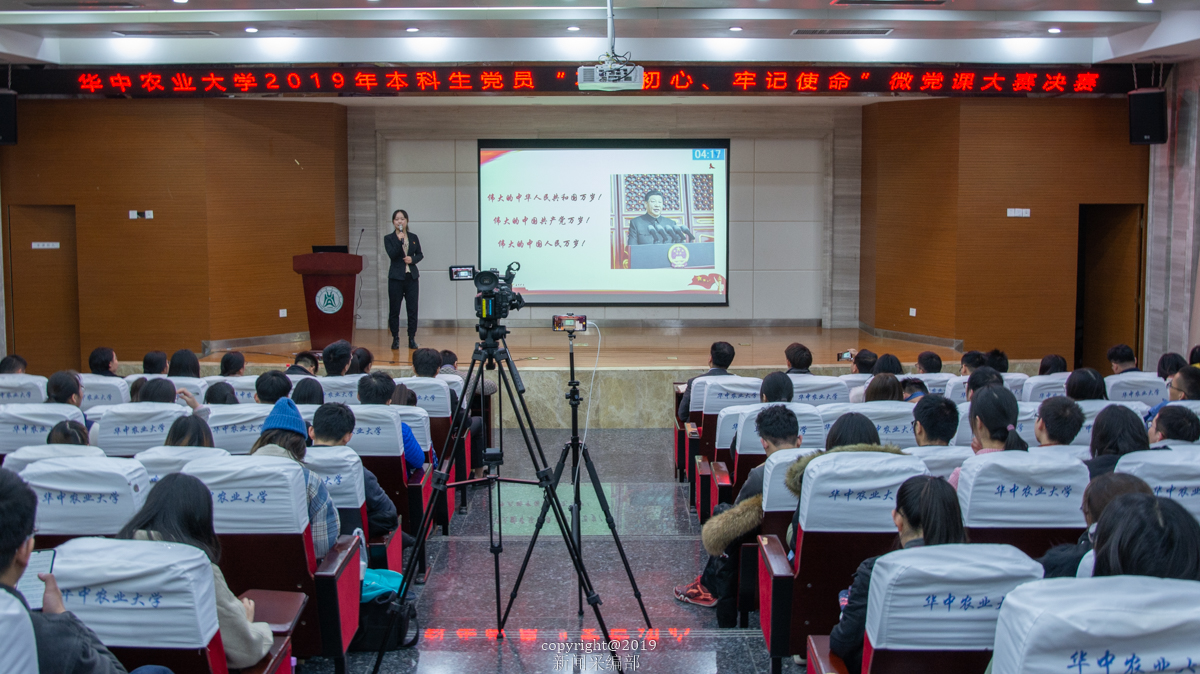 (通讯员:高宁 摄影:钟幼筠)12月6日晚,本科生党员“不忘初心,牢记使命”微党课大赛决赛在学生综合服务楼501报告厅举行。本次微党课大赛由校党委组织部和本科生院共同主办,本科生党建工作办公室承办。出席本次比赛的嘉宾有党委组织部副部长赵凯博、机关党委秘书丁记峰、本科生思想政治教育管理处张进,以及各学院负责本科生党建工作的辅导员以及本科生党员代表们。我院动科第一党支部牟星美同志、动医第五党支部王琨同志参与了本次决赛。