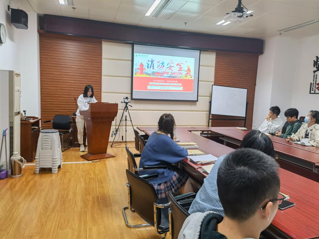 接着,马瑞仙从防火基本知识、宿舍火灾原因分析、火灾的预防与管控、火灾事故处置、火场逃生与疏散、消防事故责任追究共六个方面向大家分享安全知识。她着重阐述了宿舍火灾原因分析和火场逃生与疏散两部分内容。她指出,冬季在宿舍用电方面应该尤其注意,不要在宿舍使用大功率电器取暖,例如电热毯、小太阳等;使用插线板时,应注意及时拔掉插头;宿舍没人时应及时断电。多注意平时生活细节,防患于未然。如不幸发生火灾,一定要采用正确的逃生方法,不要贪恋财物和乘坐电梯。在日常生活中,应当多注意观察走廊的安全指示灯;学会使用灭火器。