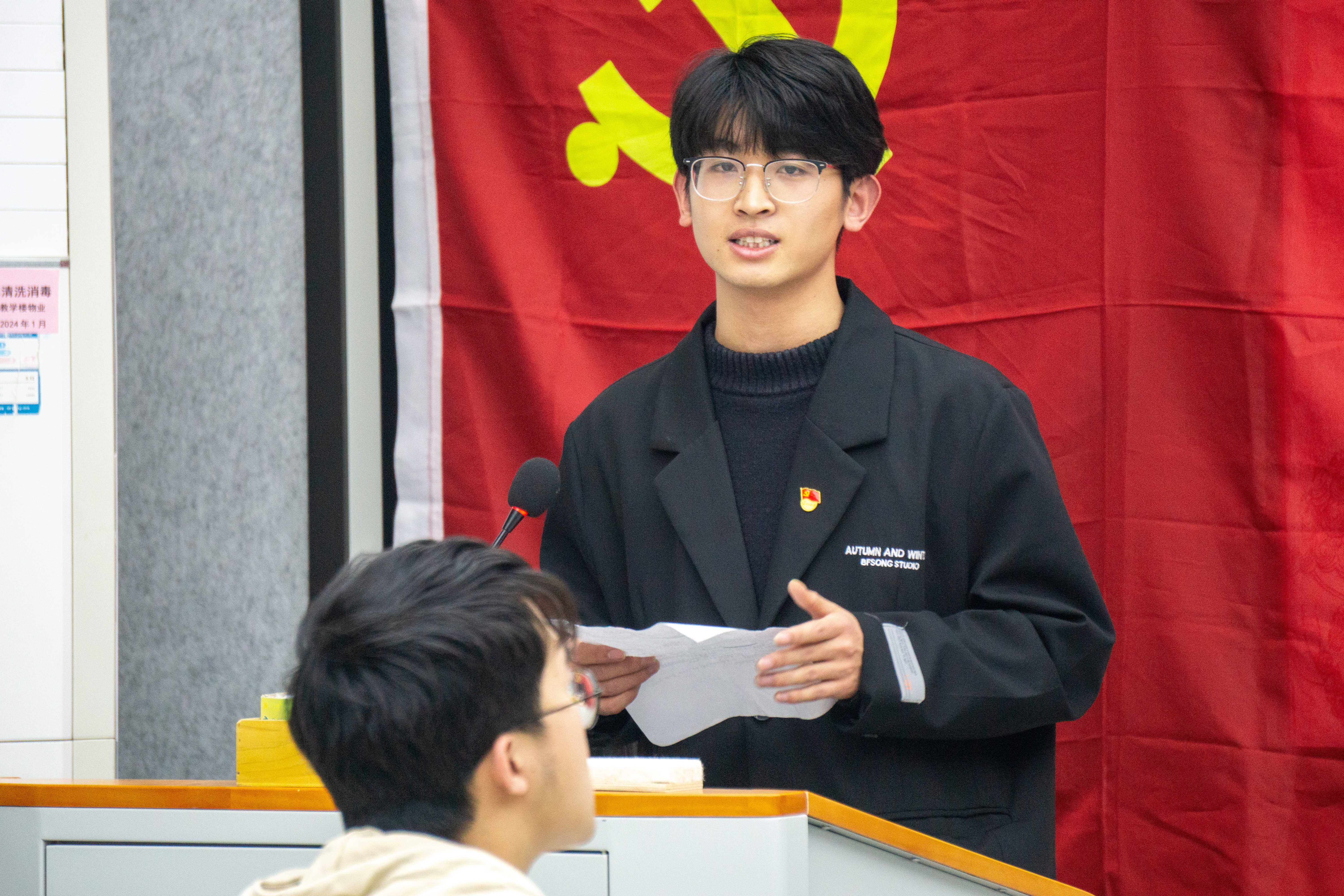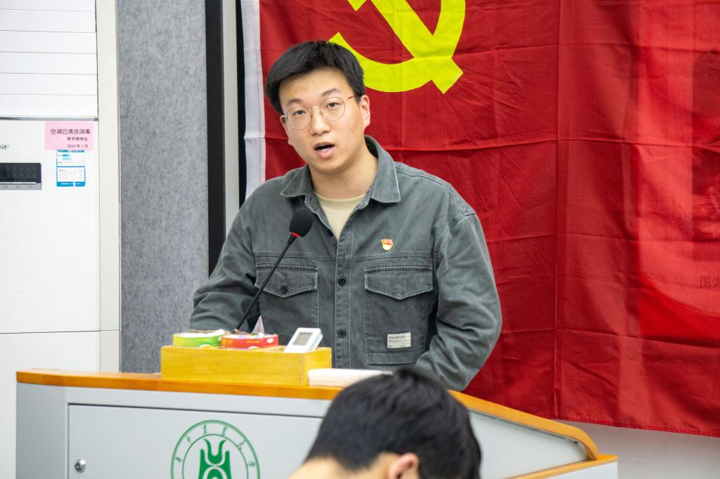 “你听我讲”环节,预备党员们结合题目内容和自身经历,分享了对所抽取题目的看法。王汝文同志针对海鸟被蓝色塑料袋困扰的图片,发出了积极践行垃圾分类、将绿色理念融入专业实践的呼吁。刘畅同志则就“315”晚会热点新闻发表观点,提出了优化举报途径、细化检查措施等具体建议。