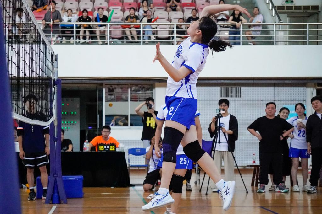 比赛来到关键局,动科动医队因脚过中线、接球出界接连失分,文法学院抓住机会,以吊球作辅,率先拿下3分。2号郭泓正手劈吊、勾手扣杀、强势拦网接连得分,重振士气,队员之间屏气凝神,默契配合,将比分拉至8-7。交换场地后,动科动医学院状态不减,2号郭泓两记强发得分,23号卜文怡压线扣球得分,以11-7扩大优势。面对落后局面,文法学院顶住压力,抓住漏洞,低弧度扣球、飘球得分,比分追到11-10。动科动医学院迅速遏制文法学院攻势,加强防守,随着2号郭泓重扣得分,动科动医学院以15-11结束比赛,摘得季军。