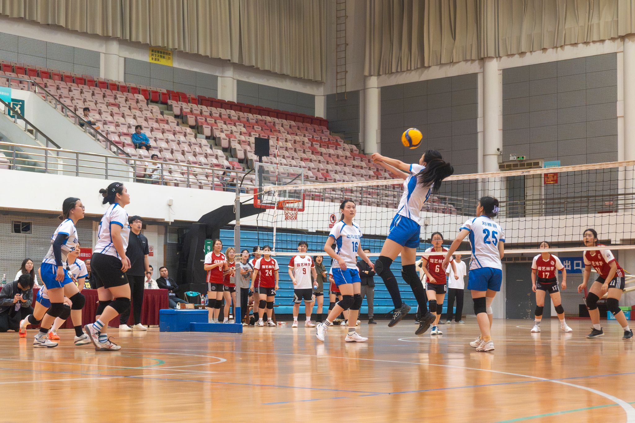 18点整比赛正式拉开帷幕。园林队率先拿下四分领先优势,动科动医队迅速稳住阵脚,凭借精准的“出界球”判断,通过大力扣球、巧妙吊球和飞身救球,迅速追平比分。园林学院队随即加强攻势,比分一度被拉大至6:12。关键时刻,动科动医队7号李佳科一记重扣,迫使对方打手出界,士气大涨。4号任心可直线扣球、7号李佳科发球得分、3号付世婷拦网得分……动科动医队实现比分反超,以25:21拿下一局。