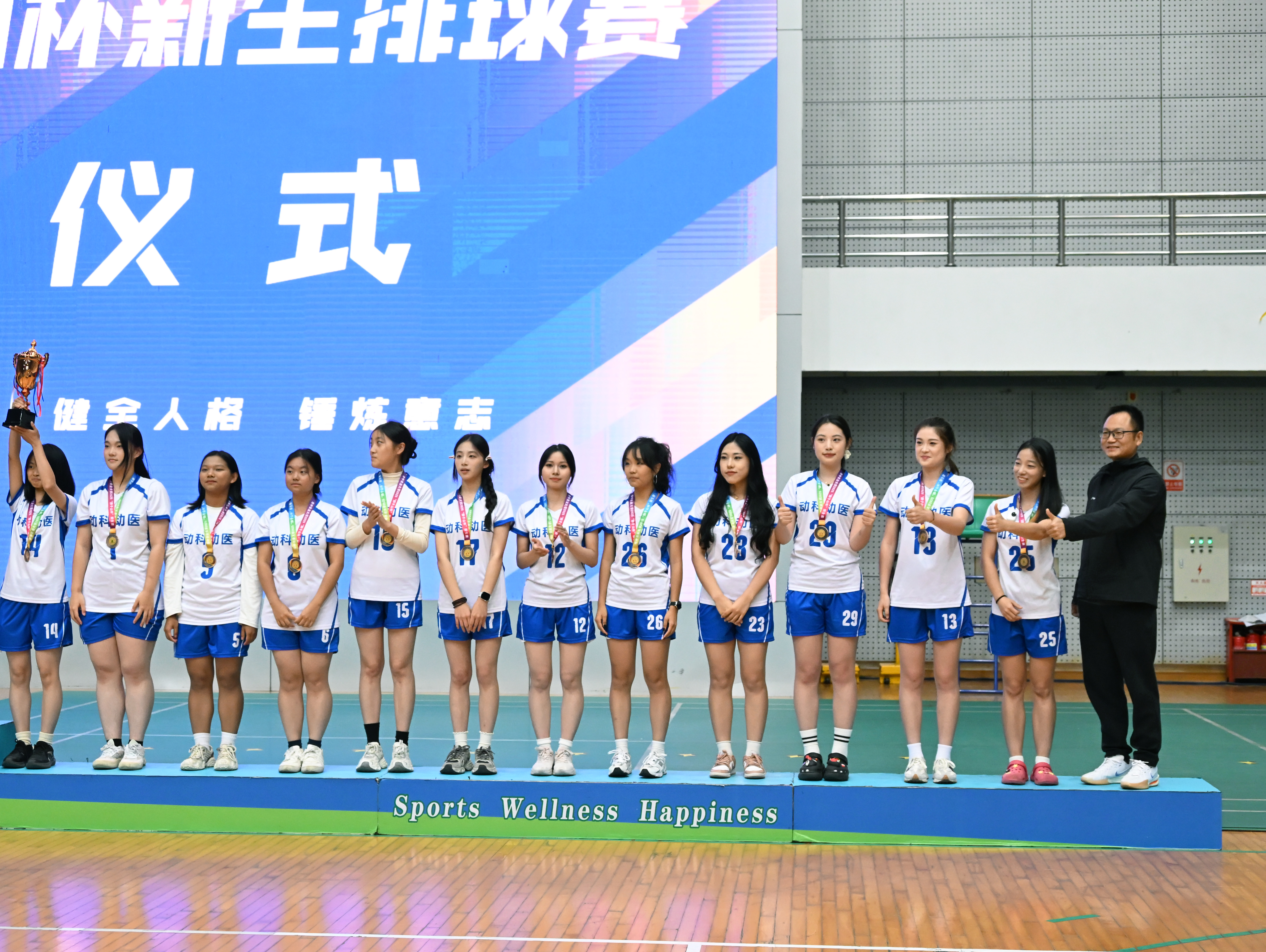 (通讯员:蒋可亭 摄影:任清竹)11月9日下午,太阳成集团tyc122ccvip“狮子山杯”新生排球女子季军赛在西体育馆进行。动科动医女排凭借稳定发挥和出色表现,以2:0的大比分战胜对手,斩获季军。