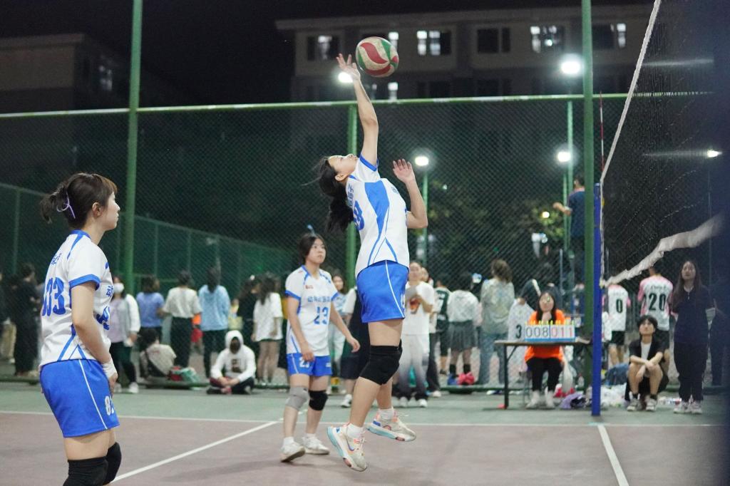 第二局比赛伊始,双方防守得当,进攻激烈。工学院先得四分,开局不利的动科动医学院迅速调整战术,2号郭泓扣球得分,8333号陈思杰凭借一记漂亮的扣球鼓舞了团队士气。工学院角度刁钻的发球被23号卜文怡救下,对方触球出界,动科动医学院将比分追平至11-11。在工学院拉大比分差距后,动科动医学院请求暂停,调整策略。暂停结束后,动科动医学院势如破竹,2号郭泓、22号王佳璐攻势猛烈,23号卜文怡发球得分,再次拉平比分。战况逐渐胶着,双方交替得分,势均力敌。动科动医学院23号卜文怡一记斜线扣球打破僵局,以24-22的微弱优势率先拿下局点,并2-0战胜工学院。