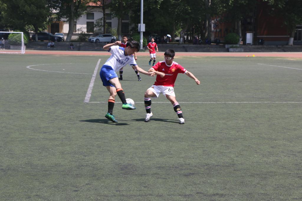 正午时分的阳光洒在球场上,比赛伊始,经管公管联队率先掌握住比赛节奏,频频攻入禁区,但遭遇动医动科学院队的顽强防守。比赛第20分钟,经管公管联队接连传球,长传几近破门,被动医动科学院队6号胡嗣祎截断。随后,动医动科学院队把握时机,开始向对方球门发起迅猛进攻,8分钟后,经管公管联队8号屠代豪造成点球,动医动科学院队10号叶尔江成功射门,先下一城。第30分钟,经管公管学院联队着手反击,打门失败。第41分钟,经管公管学院联队8号屠代豪冲破禁区,但被动医动科学院队守门员成功防守。上半场结束,动医动科学院队1:0暂时领先。