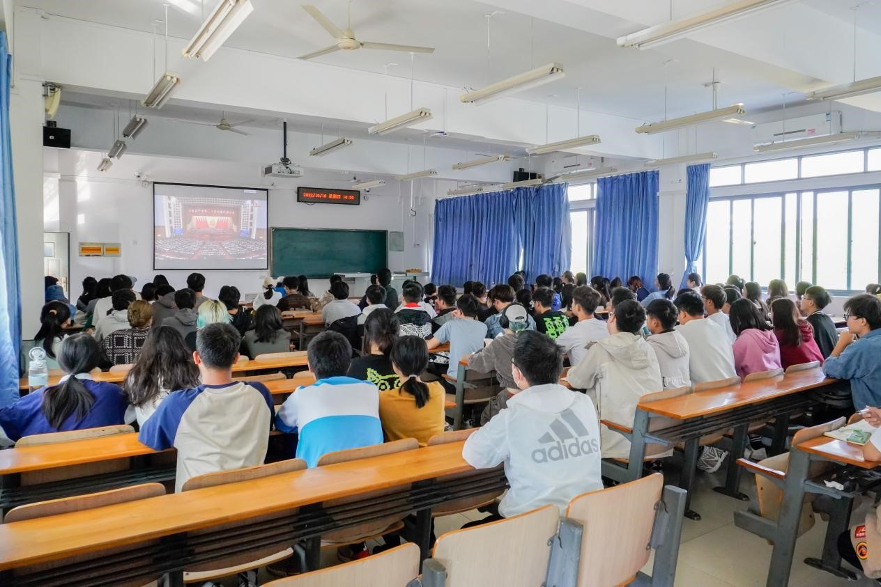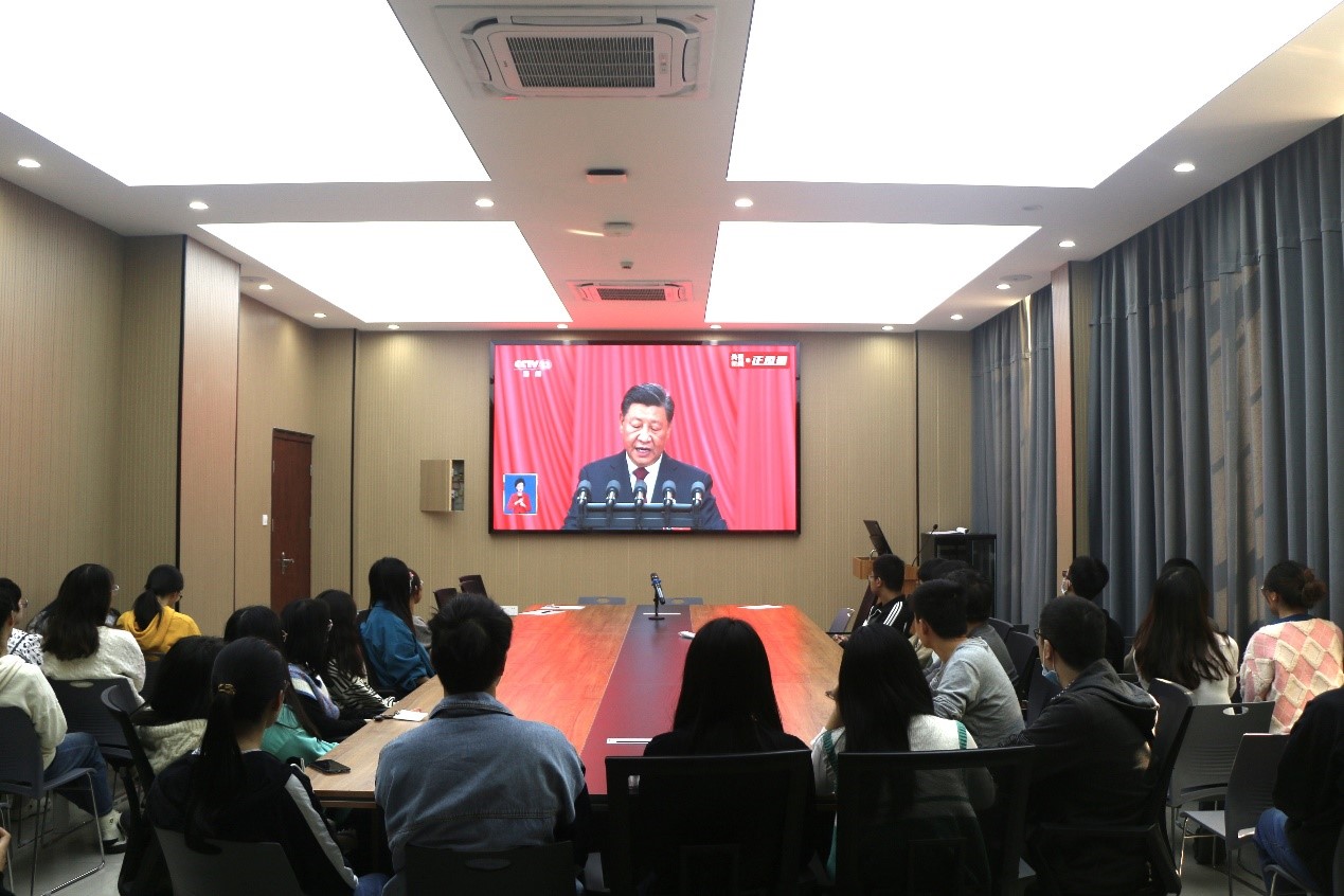 (学院师生在四综F101报告厅集中观看党的二十大开幕式直播)