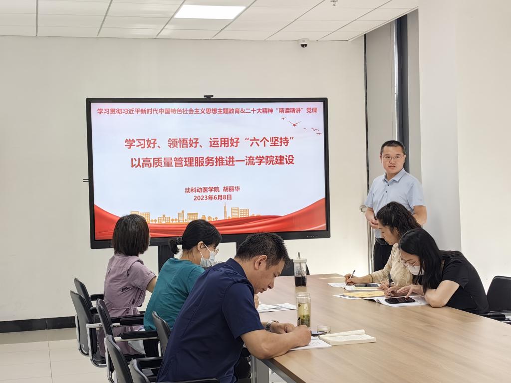 常帅作总结发言。他指出,习近平总书记对于教育、科技、人才的重要论述是我们开展各项工作的根本遵循,要深学深思、学用结合,全面落实国家教育方针,推动学院坚持立德树人根本任务,坚持“四个面向”,全方位培养、引进、用好人才,建设高质量专业化教师队伍,打造世界畜牧兽医人才中心和创新高低,开展有组织的原创性科研,培养世界一流卓越农牧人才,为建设农业强国,推进中华民族伟大复兴贡献更大力量。
