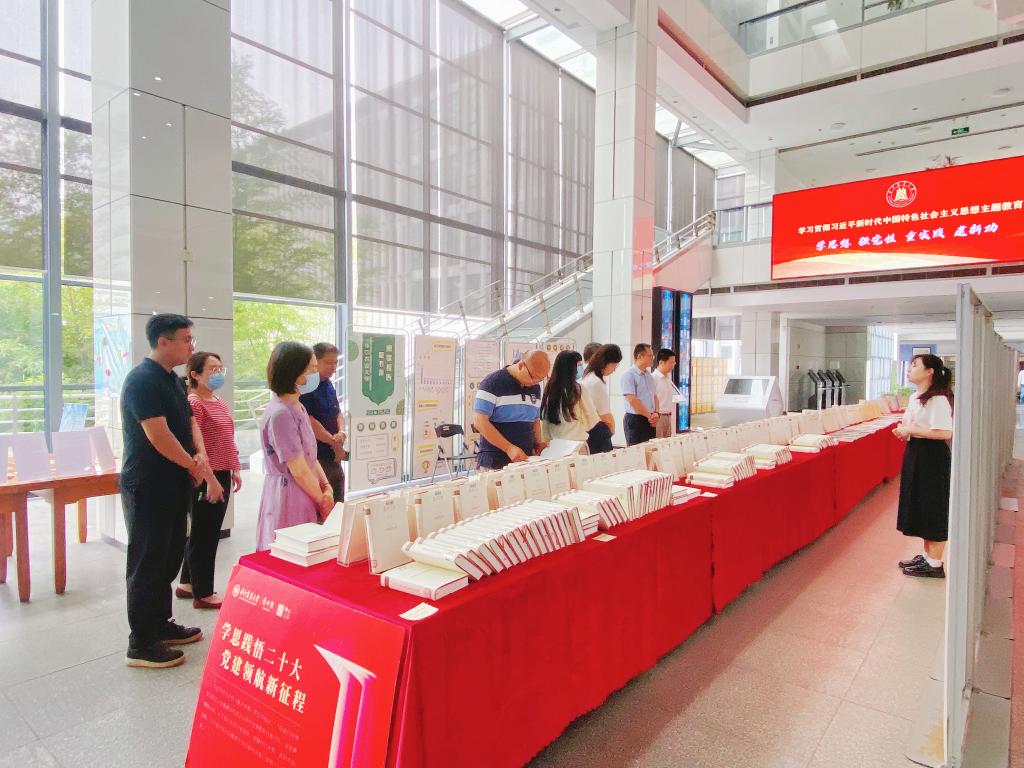 会后,党支部全体成员前往图书馆参观“学习贯彻习近平新时代中国特色社会主义主题教育”书展、《复兴文库》书展。